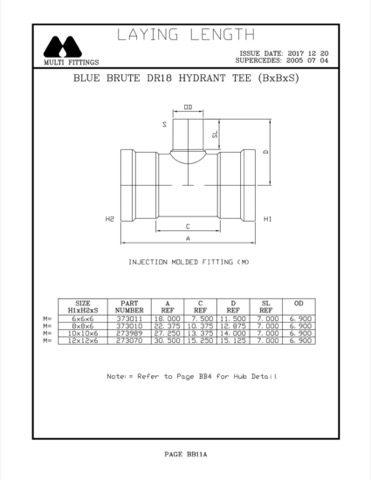 Products: Blue Brute C-900/C907 Pressure Fittings Hydrant Tee (BxBxSP)