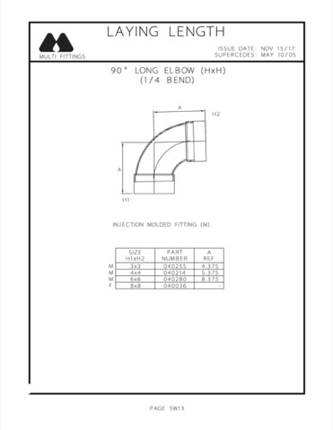 Products: Solvent Weld SDR35 Sewer Fittings 90° Elbow – Long Turn (SxH)