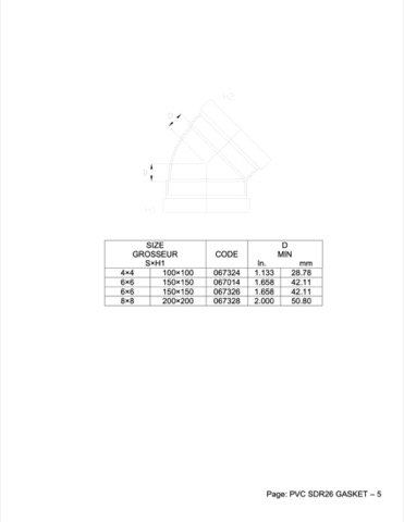 Products: Trench Tough Plus Gasketed SDR26 Heavy Wall Sewer Fittings 45° Extended Elbow (GxG)